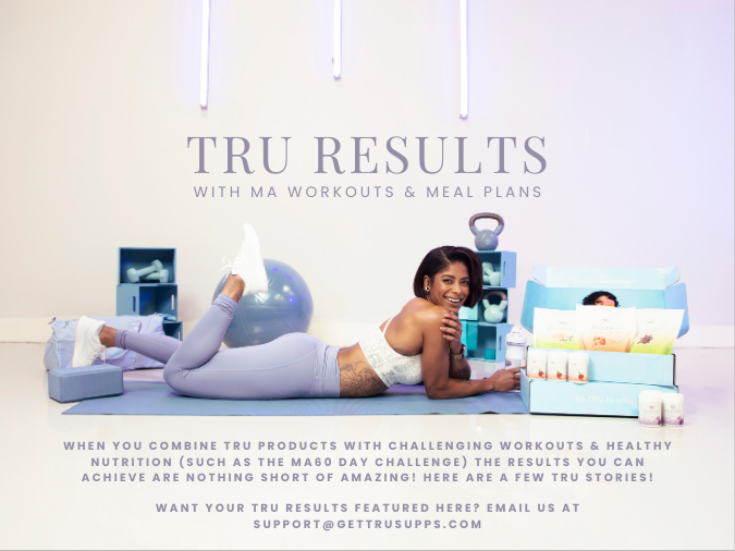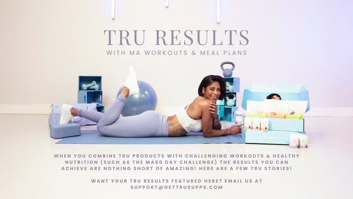 I utilized Tru Supplements (Tru Protein, Tru BCAAs, Tru Energy, Tru Metabolism, and the Tru Vitamin) throughout the MA60 challenge to enhance my results, and I was amazed by the outcome! One of my personal favorite products was the Tru Metabolism, a natural fat burner that didn't leave me feeling jittery or give me unwanted side effects. I love that Tru is a safe, clean brand that I can trust to give me effective results without harmful ingredients!